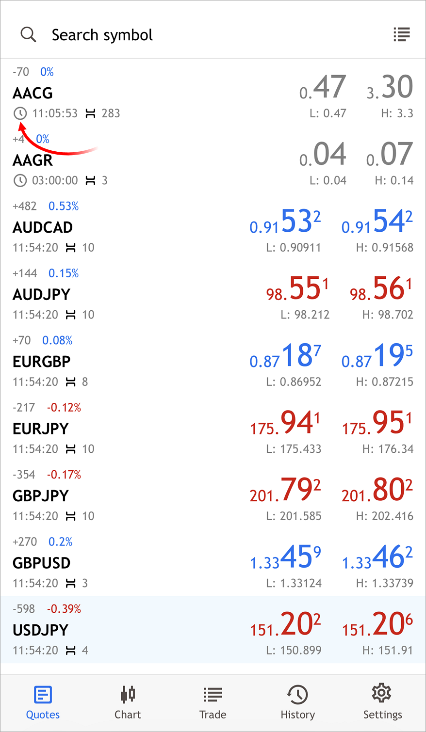 - 修复了 "报价" 部分的价格延迟指示。在移动设备上,相应的图标可能没有在扩展视图模式下出现。